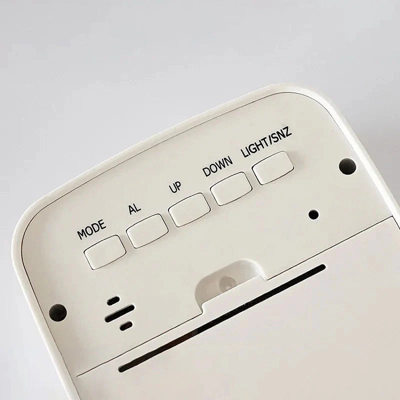 - Instrucciones de cuidado: Limpiar con un paño suave y seco. Evite la humedad, el calor excesivo y la luz solar directa para mantener su Despertador en buen estado.