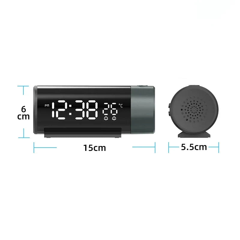 Imagina despertar cada mañana sin sobresaltos, mirando tu techo y viendo la hora proyectada de forma nítida y clara. Con nuestro despertador con proyector de hora para techo, esa es la realidad. Olvídate de buscar el móvil o de forzar la vista en la oscuridad. Este innovador reloj despertador no solo te da la hora, sino que también proyecta una imagen limpia y legible de la misma directamente donde la necesitas. Su diseño elegante y minimalista en color negro se adapta a cualquier decoración, convirtiéndolo en el complemento perfecto para tu mesita de noche. Además, su pantalla digital te muestra la hora actual y la temperatura ambiente, para que tengas toda la información de un vistazo.