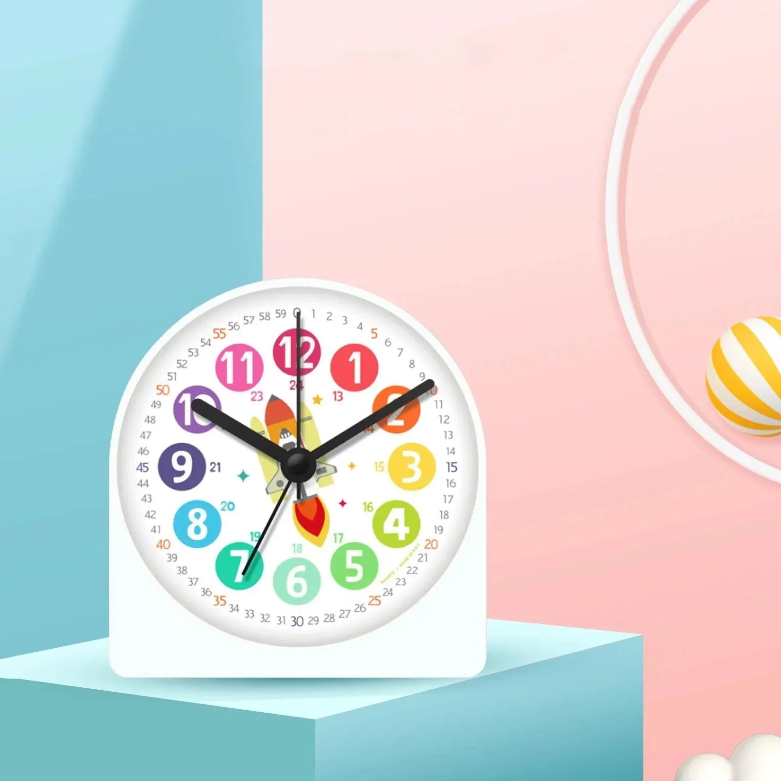 Nuestro despertador educativo para niño diseño cohete está pensado para que el aprendizaje sea intuitivo. Olvídate de las confusiones entre horas y minutos. Los números grandes y coloridos para las horas, junto con los pequeños y discretos para los minutos, guían a tu hijo de forma natural. El adorable diseño de cohete en el centro no solo añade un toque de fantasía, sino que también sirve como un punto de anclaje visual que capta la atención. Este despertador se convertirá rápidamente en el compañero favorito de tu hijo para empezar el día.