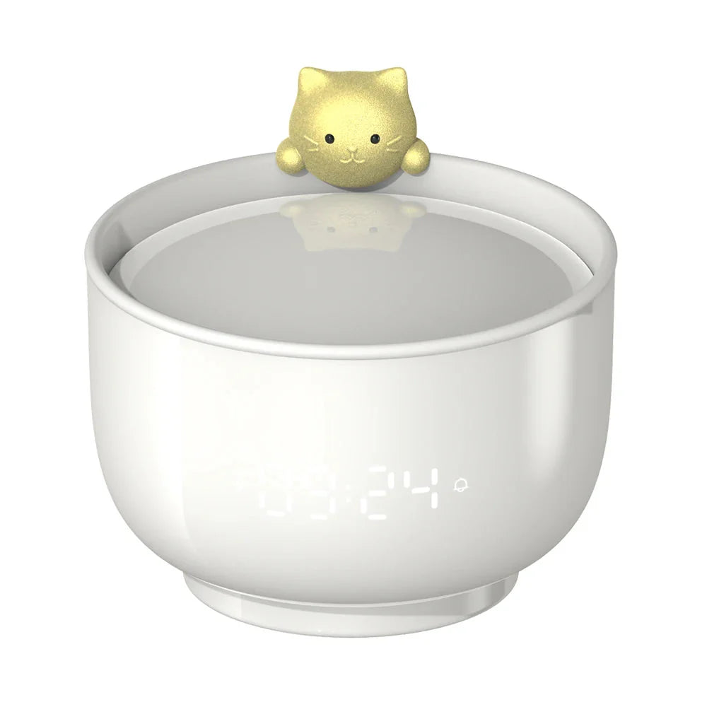 Transformez l'heure du coucher et du lever en un moment doux et magique avec notre adorable despertador lámpara infantil con luz nocturna. Conçu spécialement pour les chambres d'enfants, ce compagnon veillera sur leurs rêves tout en les aidant à se réveiller en douceur. Son design unique en forme de bol, surmonté d'une petite tête de chaton dorée, apporte une touche de fantaisie et de chaleur à n'importe quel espace. Finies les peurs du noir, place aux nuits sereines et aux matins joyeux !