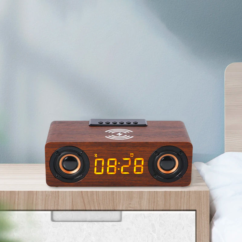 Despertador retro de madera con altavoz: Tu Compañero Perfecto