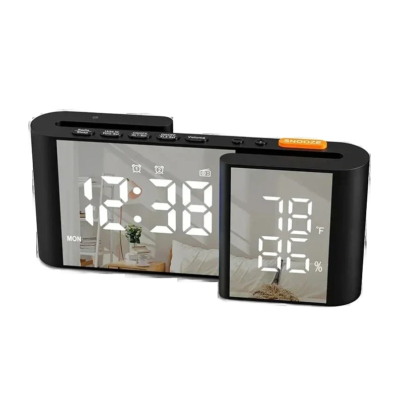 ¿Cansado de los mismos despertadores aburridos? Nuestro modelo se destaca. No solo te despierta con tu emisora de radio favorita, sino que también te proporciona datos cruciales sobre tu entorno. La pantalla de espejo añade un toque moderno y práctico, permitiéndote incluso un rápido chequeo antes de salir de la cama. Es ideal para aquellos que buscan optimizar su rutina matutina y para quienes valoran la comodidad y la tecnología en su hogar. Es más que un simple reloj, es una herramienta para empezar tu día de la mejor manera.