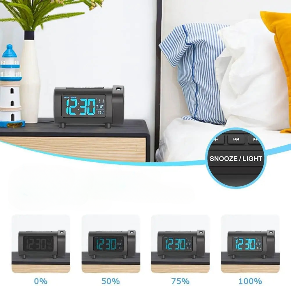 Imagina despertarte cada mañana de la forma más suave y eficiente posible. Nuestro radio despertador con proyector de hora no es un simple reloj, es tu nuevo compañero ideal para un despertar perfecto. Con su diseño moderno y elegante, se integra a la perfección en cualquier dormitorio, añadiendo un toque de sofisticación. No solo te muestra la hora claramente, sino que también la proyecta en tu techo o pared, para que nunca tengas que esforzarte por verla en la oscuridad. Olvídate de los despertadores ruidosos y de las pantallas que te ciegan por la noche; este dispositivo está diseñado pensando en tu comodidad y bienestar.