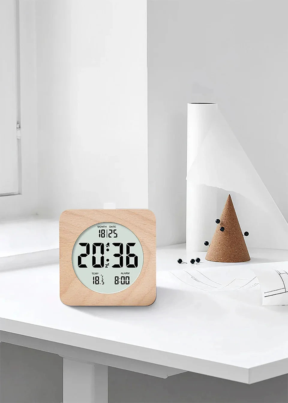 Un Reloj Despertador Digital con Efecto Madera: Funcionalidad y Diseño