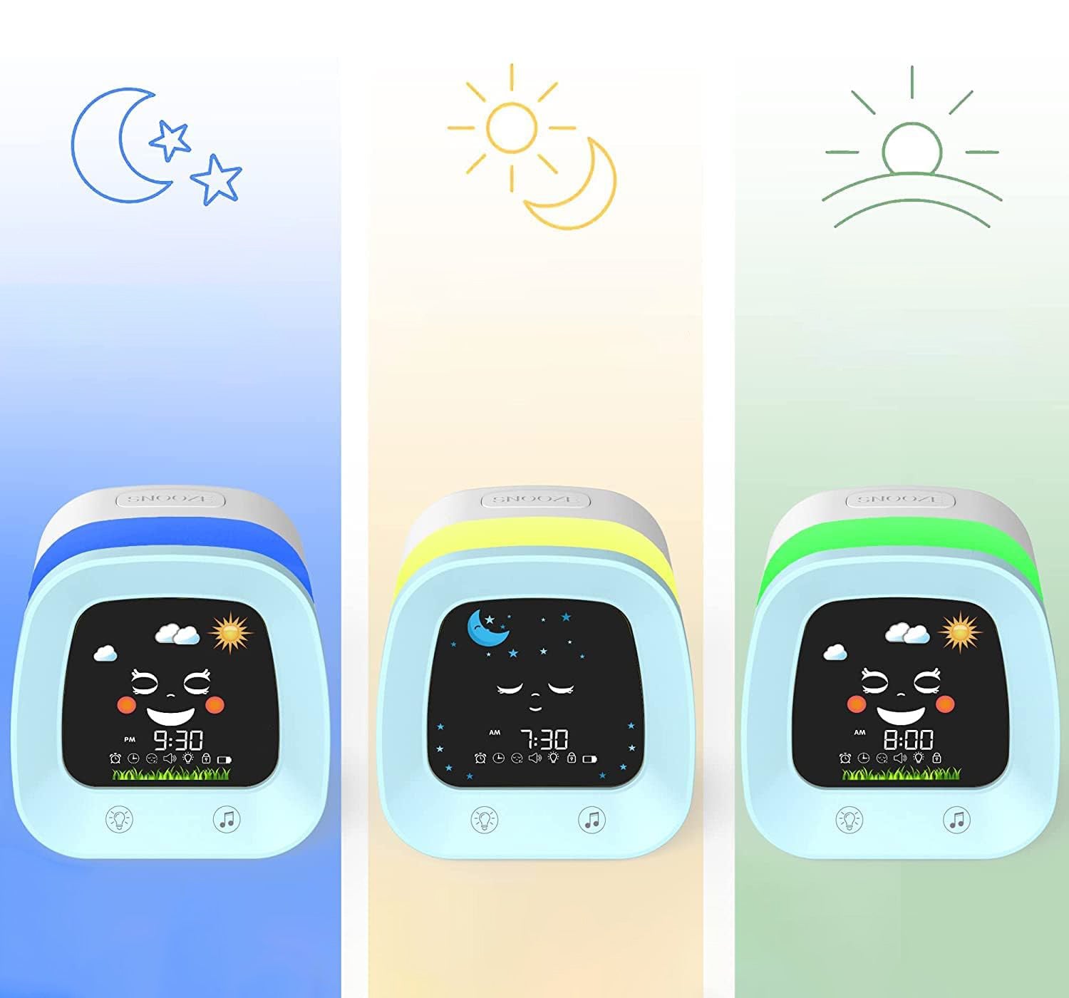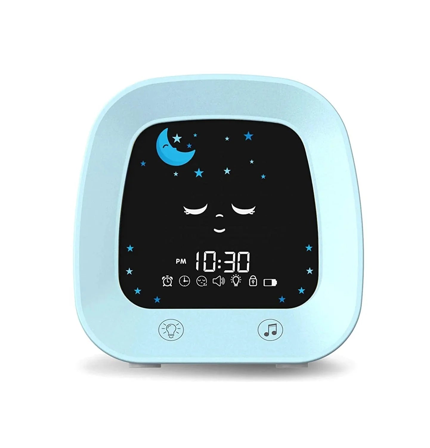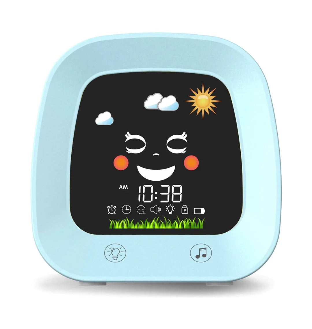 Nuestro Reloj entrenador del sueño no es un despertador común. Está especialmente diseñado para crear una experiencia de sueño positiva para los niños. Su interfaz intuitiva les permite saber cuándo es hora de quedarse en la cama y cuándo pueden levantarse, reduciendo las confusiones y las visitas nocturnas a la habitación de los padres. Además, su luz suave puede funcionar como una luz nocturna, brindando seguridad y confort durante toda la noche. Despídete de las mañanas caóticas y da la bienvenida a un hogar más tranquilo y organizado.