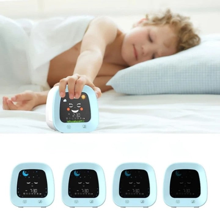 Descubre nuestro Reloj entrenador del sueño, el compañero ideal para ayudar a tus pequeños a desarrollar hábitos de sueño saludables. Este adorable reloj, con su diseño amigable y colores suaves, está diseñado pensando en la tranquilidad de los niños y la paz mental de los padres. Su pantalla luminosa muestra la hora de manera clara y cuenta con simpáticas animaciones que guían a los niños a la hora de dormir y al despertar. Imagina a tu hijo despertándose con una cara sonriente y un sol brillante, sabiendo que es hora de empezar el día. Este reloj no es solo un indicador de tiempo, es una herramienta de aprendizaje que hace que la rutina sea divertida y fácil de entender.
